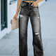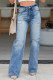 Wash Water Frayed Low Waist Straight Leg Jeans