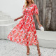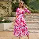 Print V neck Midi Dress