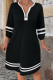 V-neck Long Sleeved Loose Slit Dress