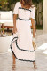One Line Neckline Bubble Sleeve Printed Skirt