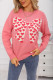 Peach Heart Printed Round Neck Long Sleeved Sweater