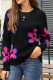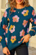 Flower Printed Long Sleeved Knitted Sweater