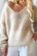 V-neck Solid Color Long Sleeved Knitted Sweater
