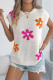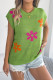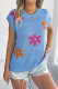 Flower Printed Bat Short Sleeved Knitted Sweater