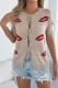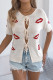 Red Lip Printed Short Sleeved Cardigan Sweater