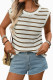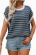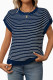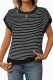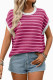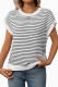 Round Neck Short Sleeved Striped Sweater