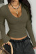 Solid Color Long Sleeved V-neck Sweater