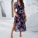 V-Neck Printed Vacation Dress